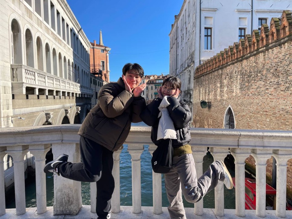 베네치아의 첫번째 방문지인 리알토 다리를 향해 골목을 따라 이동했습니다. 베네치아에서 가장 아름다운 다리로 손꼽히는 리알토 다리에 도착했습니다. 흰색의 대리석 다리가 햇빛에 비쳐 아름다운 광경이었습니다. 다리 위에 올라선 아이들은 뱃길과 마을들을 내려다 봤습니다. 햇살이 유난히 밝게 비쳐 감성에 젖었습니다.