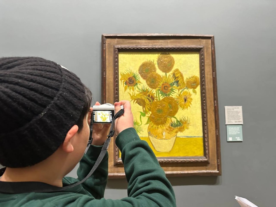 내셔널 갤러리로 이동했습니다. 파리 루브르 박물관, 오르세 미술관과는 또 다른 느낌의 내셔널 갤러리에서 차분히 작품을 감상했습니다. 고흐와 모네의 작품을 가장 먼저 찾아 사진을 찍고 열심히 걸음을 옮겨 세잔과 다빈치, 윌리엄 터너의 작품을 감상했습니다. 고요한 갤러리 내부는 작품을 감상하기에 딱 좋았습니다. 직접 걷고 보고 체험하며 넓은 세상을 배우는 아이들입니다.