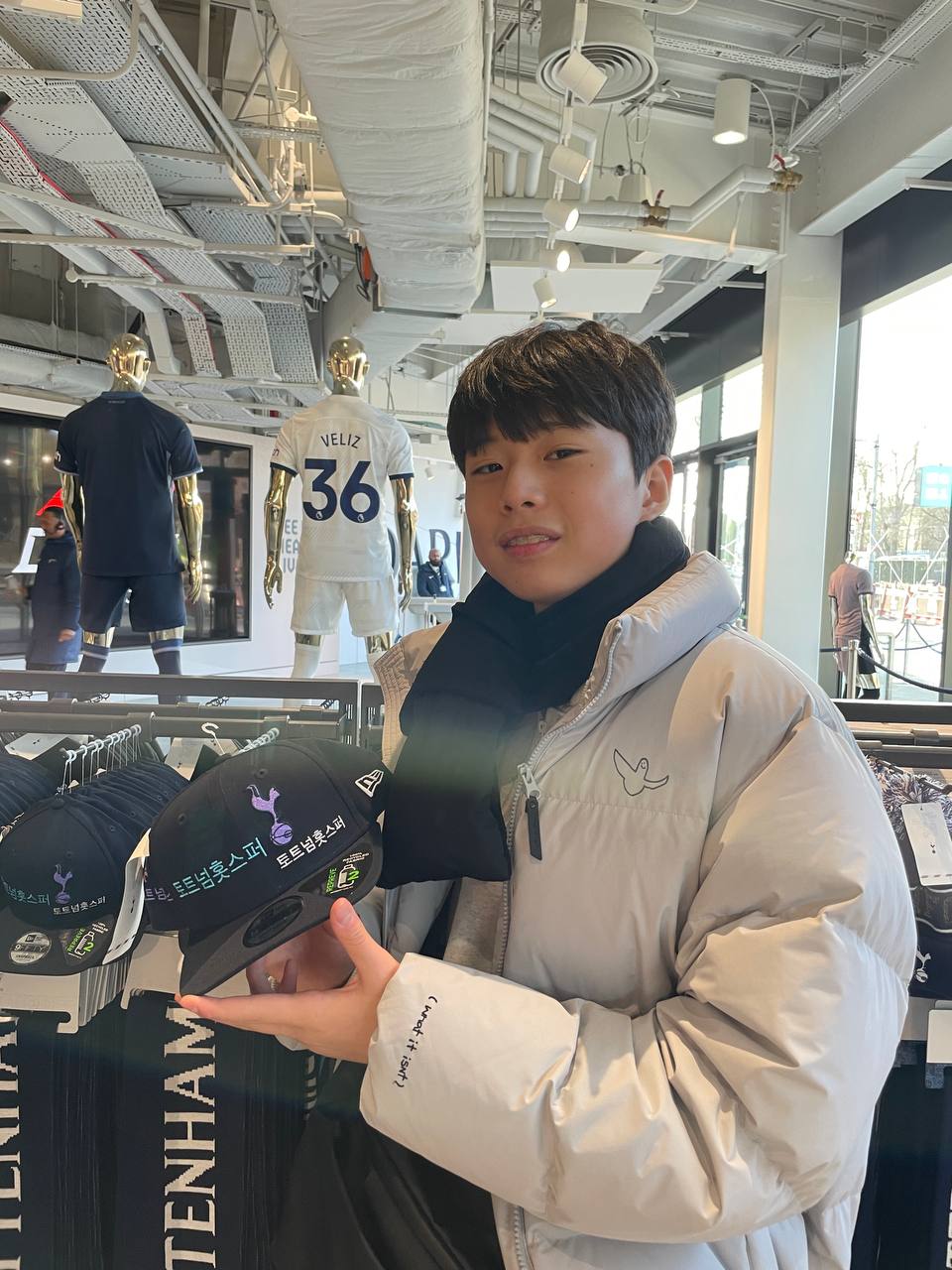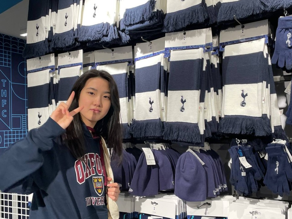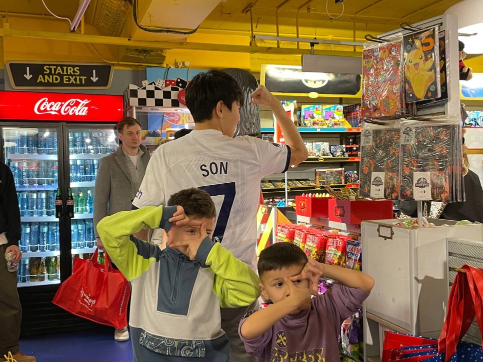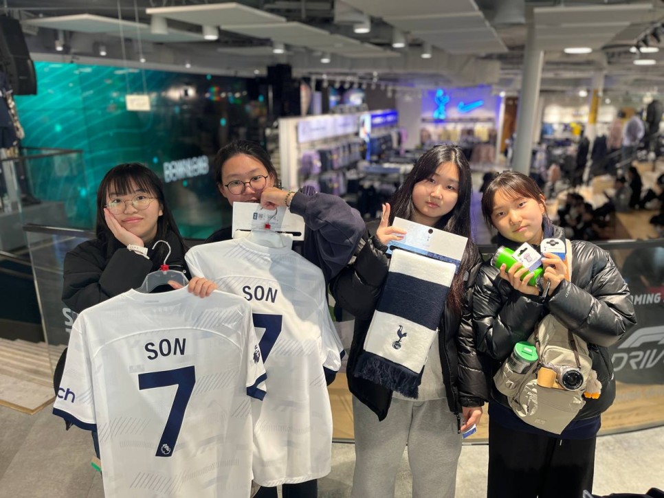드디어 도착한 기념품샵. 아이들은 신나게 구경을 합니다. 자랑스러운 손흥민 선수의 유니폼과 열쇠고리, 목도리 등 기념품을 장바구니에 한가득 담았습니다.