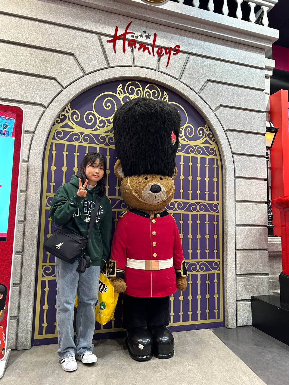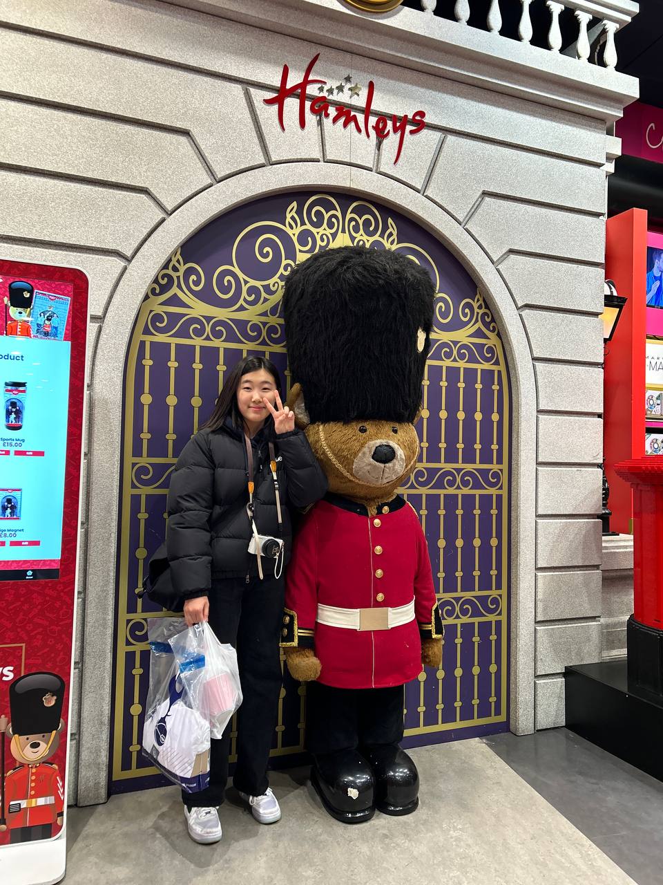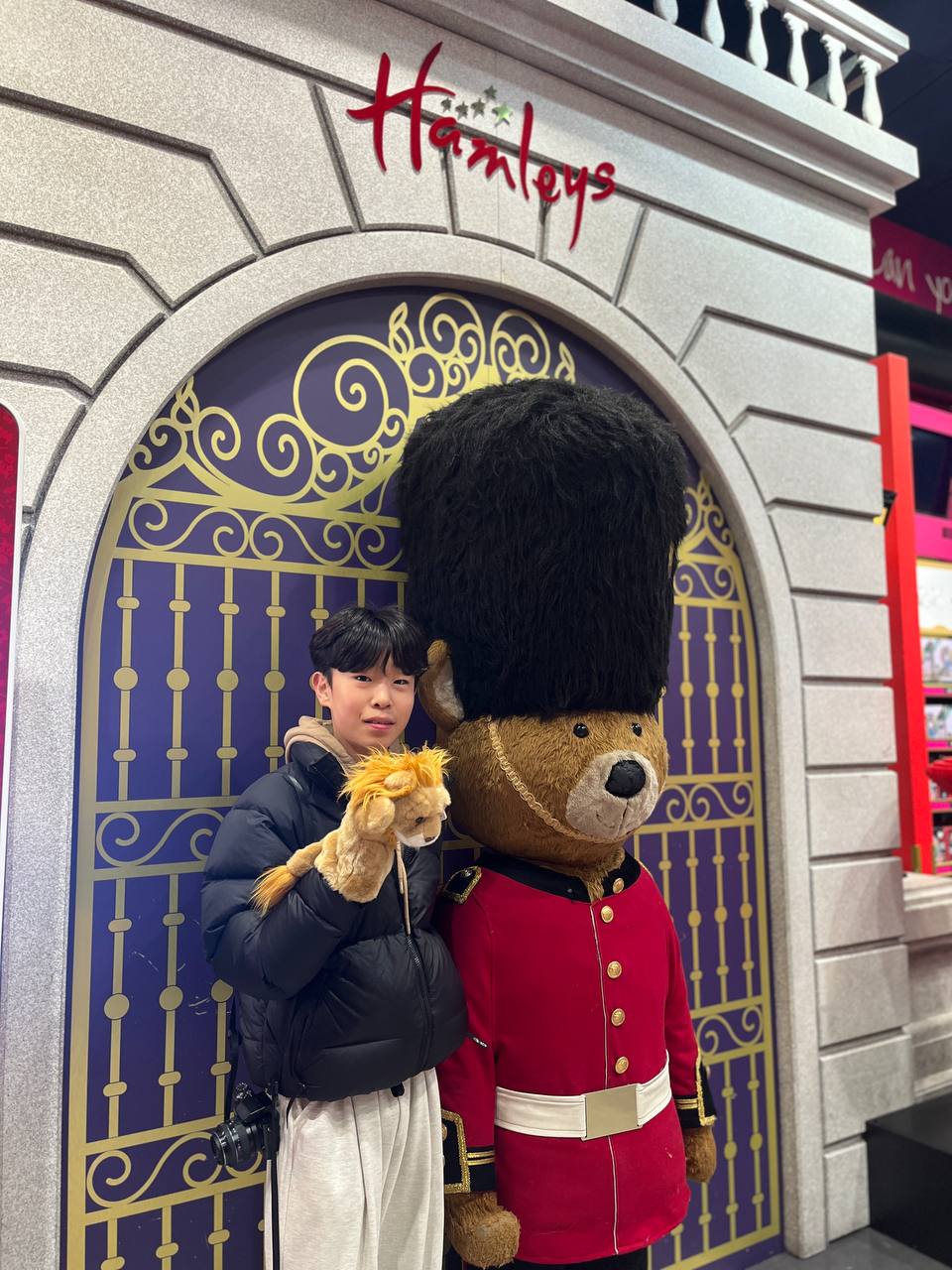 다음 일정은 햄리스 장난감 백화점입니다. 백화점에 들어서자마자 귀여운 인형들이 반겨줬습니다. 5층에서부터 쭉 내려오며 세계적인 규모의 장난감 매장을 구경했습니다. 한쪽 벽면이 곰인형으로 가득 차있습니다. 런던 곰인형 앞에서 기념사진을 촬영했습니다. 옆에 커다란 인형이 있어 사진을 찍고 보니 가격이 4000파운드. 이리저리 만져보다가 가격을 보고는 조심스럽게 두 손을 떼는 아이들이 귀엽기만 합니다. 갖고 싶었던 인형, 장난감들을 신나게 구경합니다.