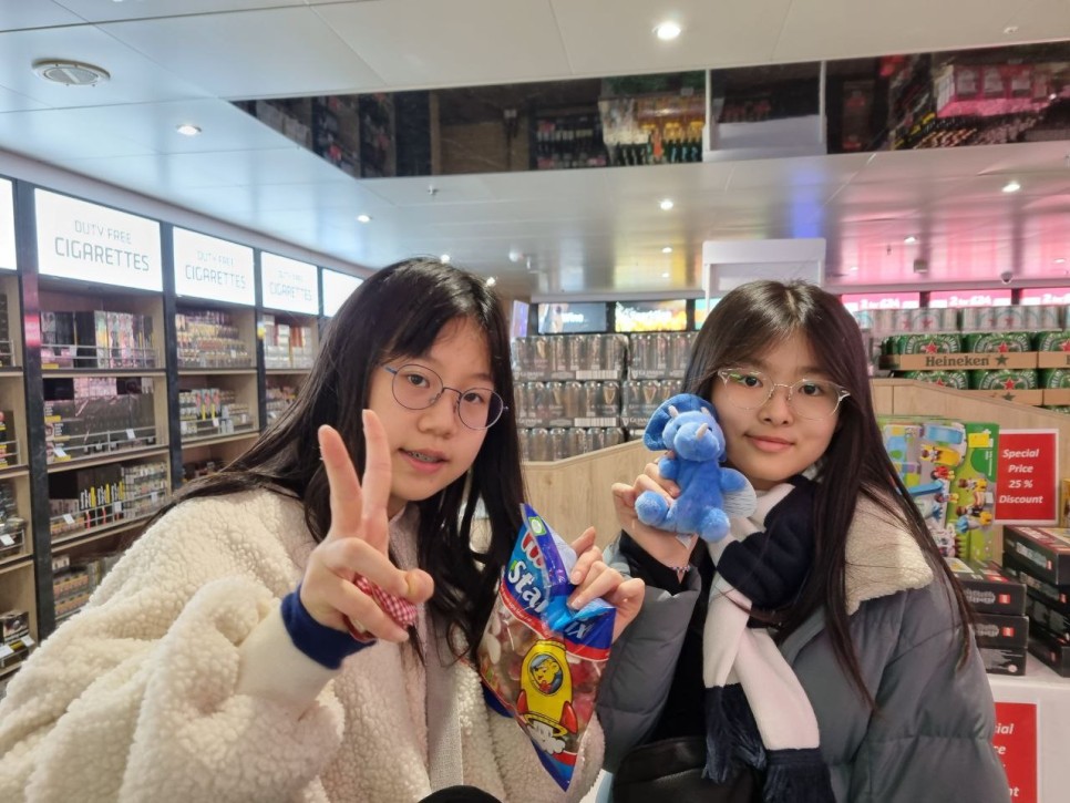 코우치에서 재미난 사연들을 듣고 신나는 노래를 부르며 이사를 갑니다. 도버항에 도착해서 페리를 탈때는 페리의 엄청난 크기에 놀랍니다. 페리에 탑승해서는 도크에 나가 바다도 보고 세븐시스터즈 해안절벽도 봤습니다. 이후 페리안에서 식사를 했습니다. 멋진 오션뷰를 보면서 피시앤칩스 닭다리구이 등 맛있게 먹었습니다. 페리안에서 자유시간을 가졌습니다. 면세점을 가거나 매점을 갔습니다. 친구들에게 줄 선물도 사고 젤리나 초콜릿도 면세가격으로 샀습니다.