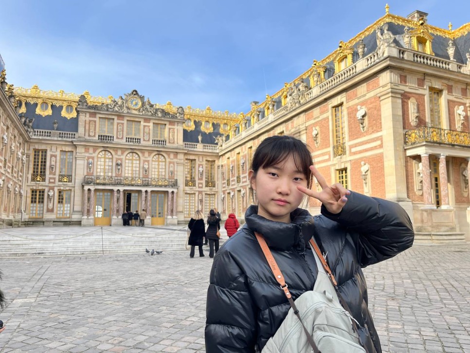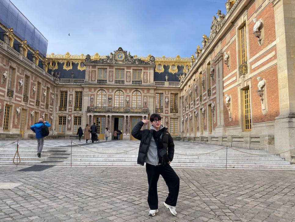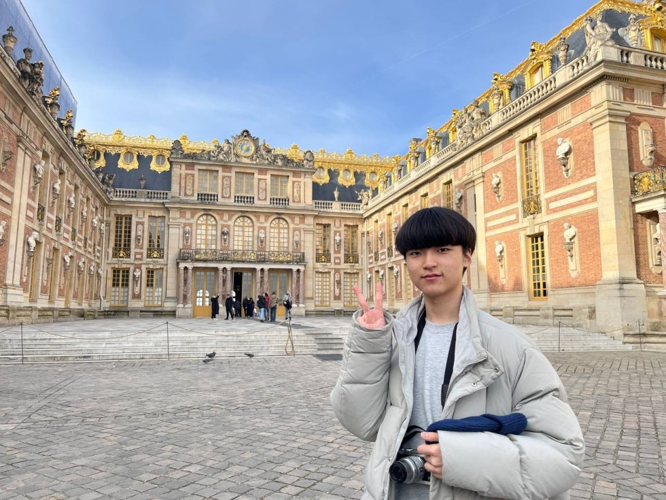 점심을 든든하게 먹고 베르사유 궁전으로 향합니다. 오늘도 날이 좋습니다. 마지막까지 날씨 운도 잘 따라주니 다행이네요. 오늘도 멋진 인생샷을 건질 생각에 들떠있습니다. 베르사유 궁전에 도착하니 외관에서부터 궁전의 화려함이 돋보입니다. 황금색으로 칠해진 성문과 화려한 장식들을 보며 감탄하는 아이들입니다.