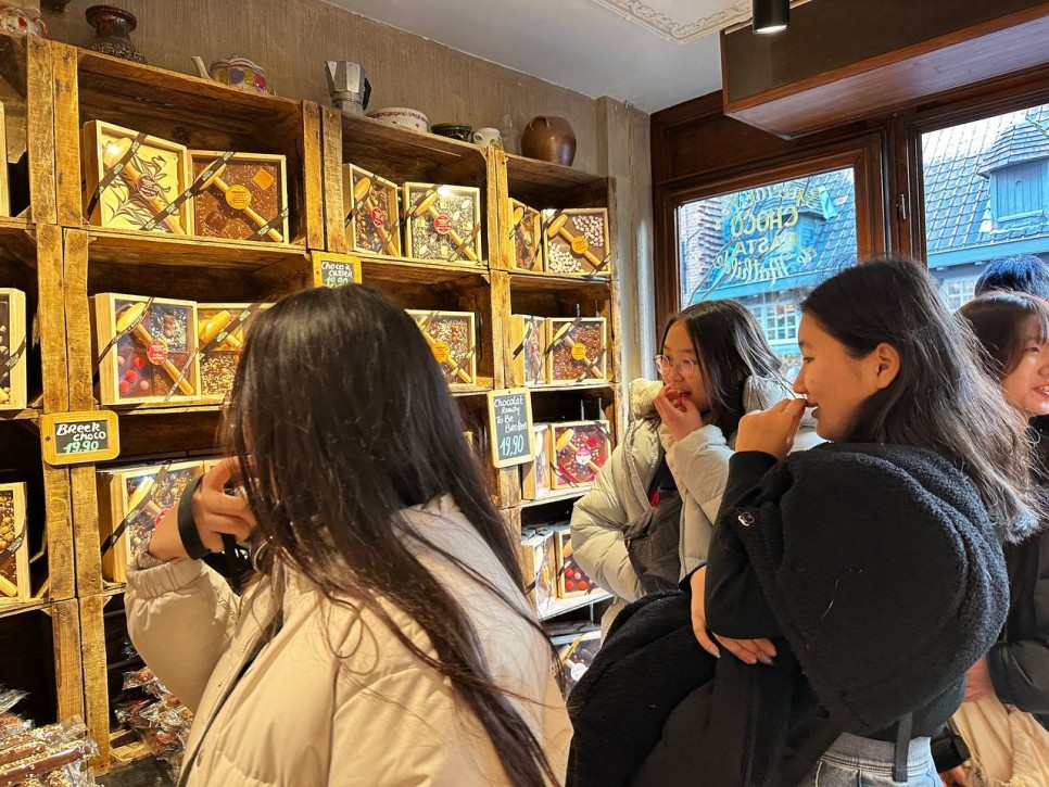 이어서 자유시간을 가졌습니다. 자유시간동안 감자튀김, 와플도 실컷 먹었습니다. 초콜릿 기념품샵에서 초콜릿도 사고 옷가게, 카페도 구경했습니다.