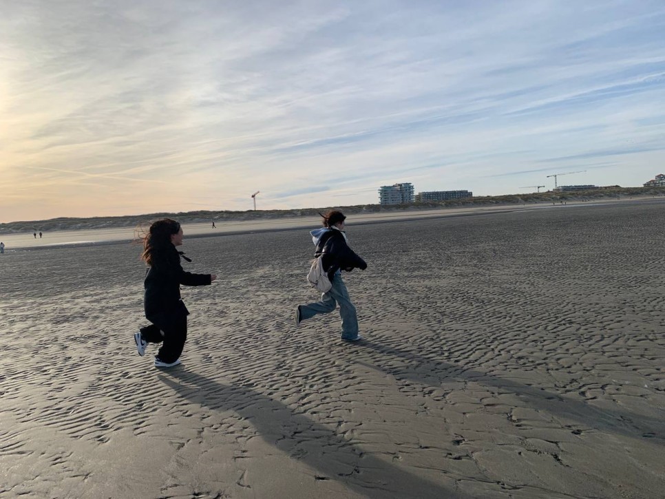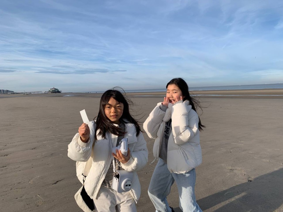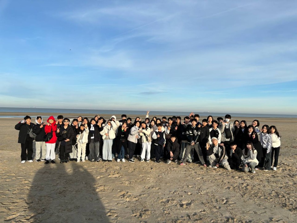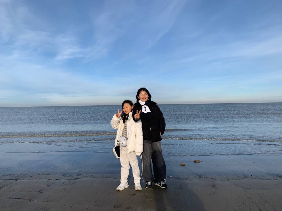 바닷가에 나왔습니다. 아름다운 산책길을 지나니 드넓은 바다가 펼쳐집니다. 보이지는 않지만 바다건너 우리가 여행했던 영국이 있습니다. 그새 가까워진 친구들과 바다에서 사진도 찍고 모래밭을 마음껏 뛰어놉니다. 모래위에 그림도 그려보고 파도를 바라보며 생각에 잠기기도 합니다.