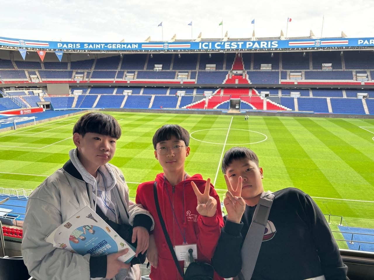파리 시내여행을 마친 아이들은 파리 생제르망 구장을 향해 출발했습니다. 경기장에 도착한 아이들은 자신들이 좋아하는 축구선수 얘기를 하면서 경기장을 둘러봤습니다. 선수대기실과 트레이닝룸 등 선수들의 흔적이 느껴지는 곳곳을 누볐습니다. 경기장관람을 마친 아이들은 기념품숍으로 이동해 평소 가지고 싶었던 기념품을 구매했습니다.