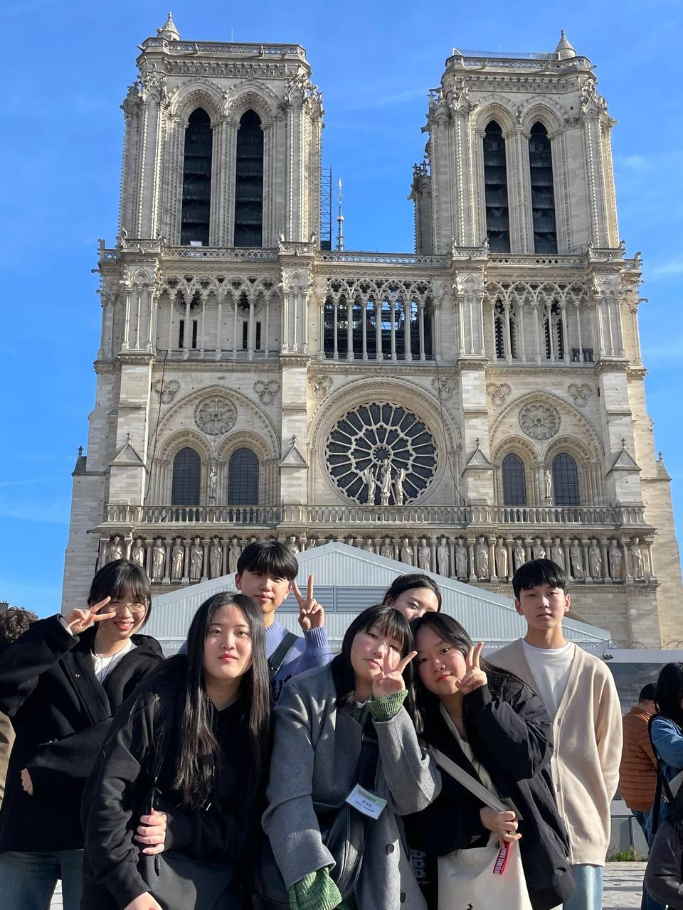 다음으로 이동한 곳은 노트르담 대성당입니다. 프랑스에서 제일 가는 고딕 양식 건축에 대해 이해하며 외관을 보는 아주 흥미로운 시간이었습니다. 대칭을 이루고 있지만 왼쪽과 오른쪽에는 분명 다른 점이 있습니다. 다같이 10분동안 무엇이 다른지 찾아보는 시간도 가졌습니다.