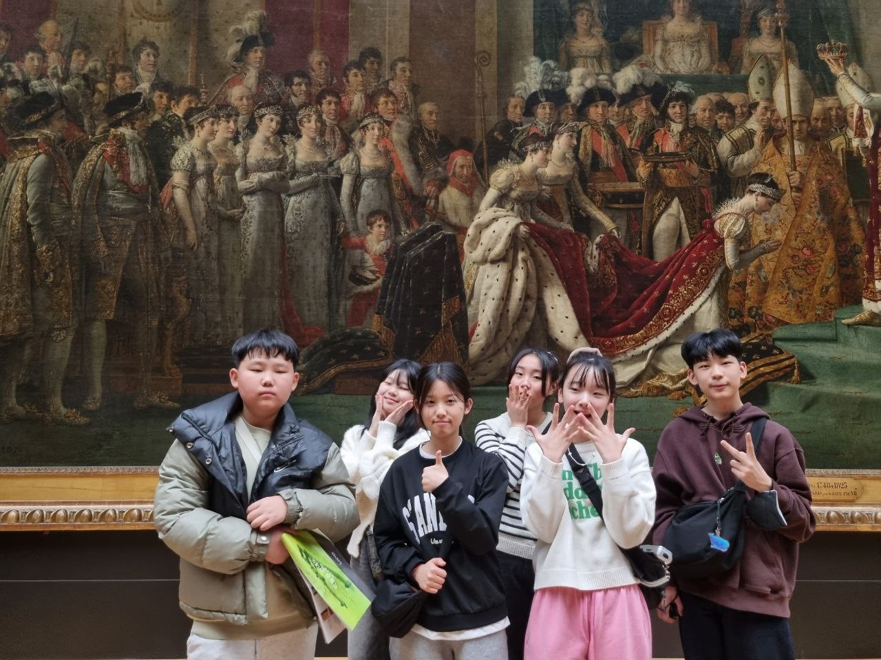 브리핑을 마치고 이동해 도착한 루브르 박물관입니다. 매우 크고 화려한 외관에 아이들은 눈을 동그랗게, 입도 동그랗게 놀라는 모습입니다. 명작이라 알려진 ‘모나리자, 밀로의 비너스, 사모트라케의 니케‘ 그리고 메두사의 뗏목, 민중을 이끄는 자유의 여신을 선생님의 인문학 해설과 함께 보고 들으며 다양한 관점과 생각을 넓혀나가는 아이들입니다.
