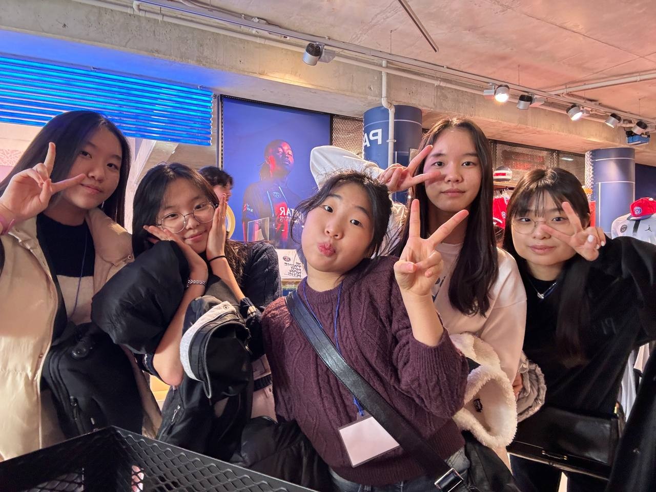 투어를 다 마친 아이들은 기념품샵에서 축구공을 사기도 하고 유니폼을 사기도 하며 파리에서의 첫 기념품을 간직합니다. 친구들과 가족들의 선물을 사는 친구들은 벌써 양손 가득입니다.