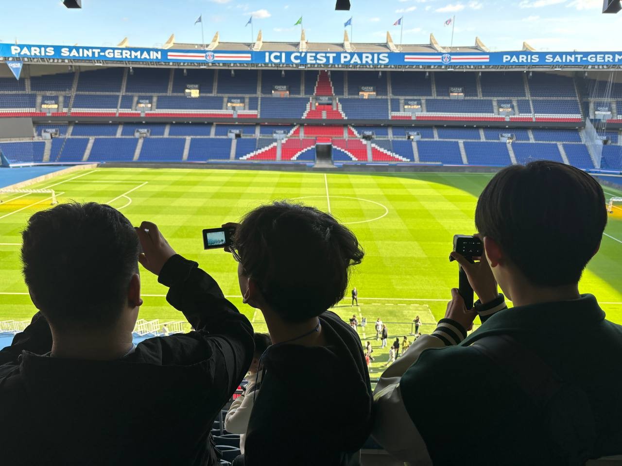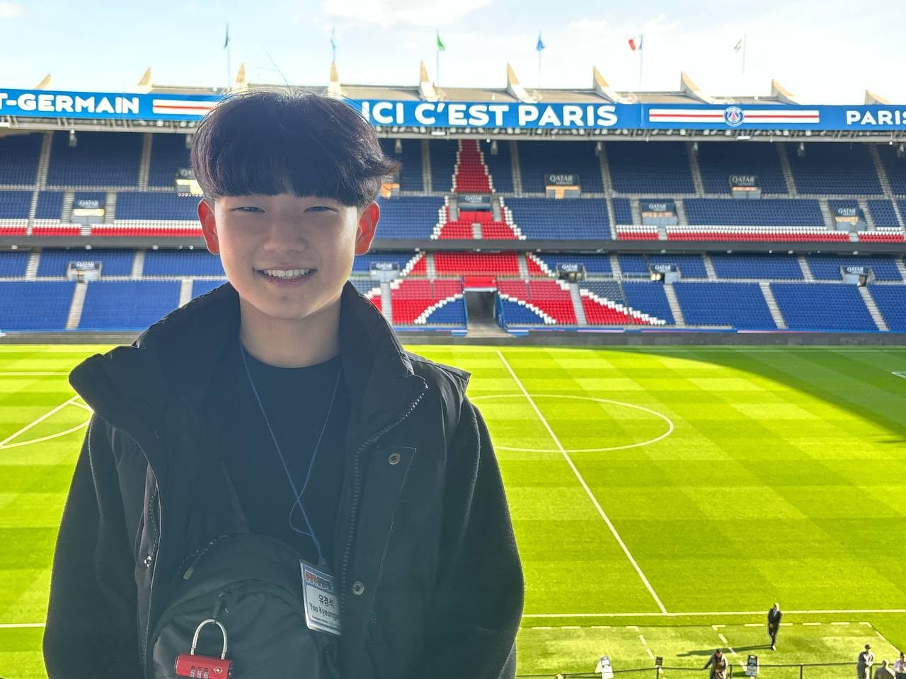 프랑스에서의 첫번째 방문지는 파리 생제르망 구장입니다. 파리 생제르망 구장은 프랑스대혁명 이전에 프랑스 왕실이 사용하던 유원지인데요, 2024년 파리 올림픽 축구 예선 결승경기가 개최될 장소이기도 합니다. 엄청난 규모의 시합장소를 보고 아이들은 눈이 커집니다. 너도나도 축구선수의 포즈를 따라하며 사진을 찍습니다. 직접 공을 차보기도 하고 유니폼을 만져보기도 하며 축구를 좋아하는 아이들에게는 천국이 따로 없습니다.