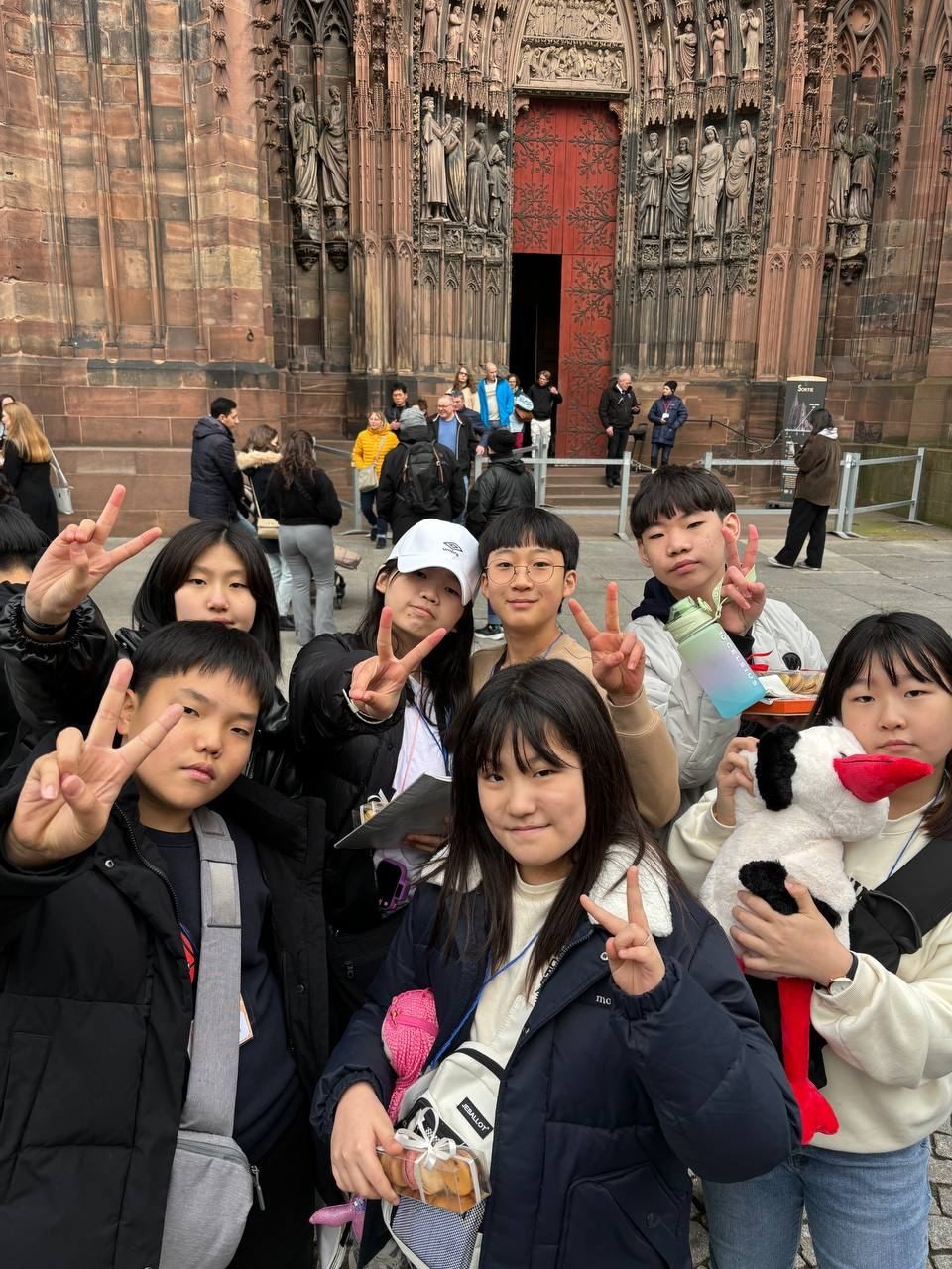 여행이 절반쯤 지나기도해서 부모님께 보내는 영상도 촬영했습니다. 스트라스부르가 담고 있는 도시이야기와 쁘띠프랑스의 설명을 듣고 스트라스부르의 중세모습을 간직한 대성당방면으로 이동했습니다. 스트라스부르 대성당을 본 아이들은 환호성 질렀습니다. 성당을 바라보며 식조친구들이 준비한 점심을 먹고 자유시간을 가졌습니다.