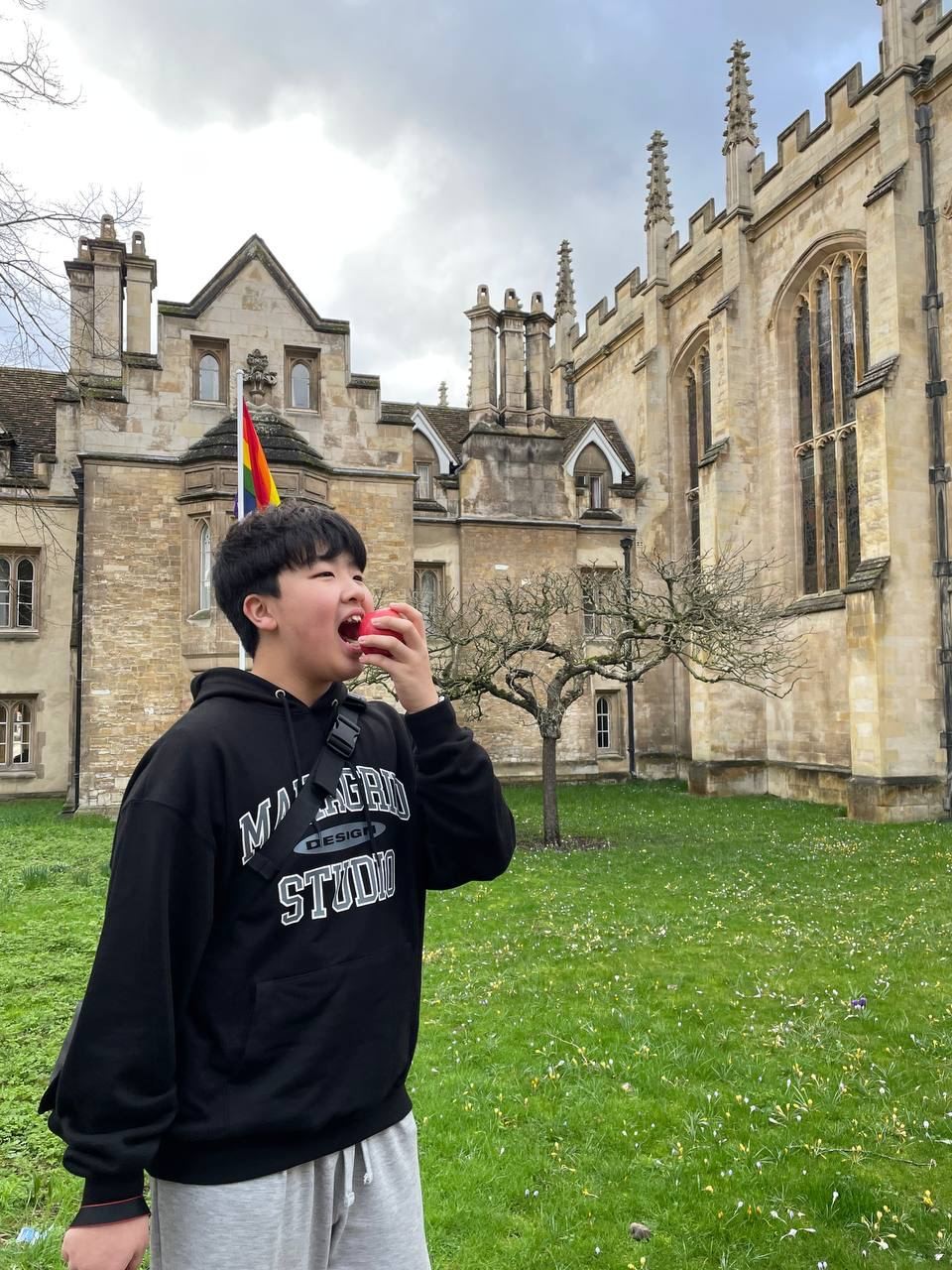 버스에서 내리자마자 보이는 파란 하늘에 기분이 좋아집니다. 수학의 다리 밑에 흐르는 캠강과 캠강 주변에서 흔들리는 나뭇가지들이 한폭의 그림같습니다. 캠브리지 대학생이 된것처럼 거리를 거닐고 트리니티 칼리지, 킹스 칼리지 앞에서 사진도 찍어봅니다. 트리니티 칼리지 옆 뉴턴이 중력의 법칙을 발견했다는 사과나무 앞에서도 사진을 찍습니다.