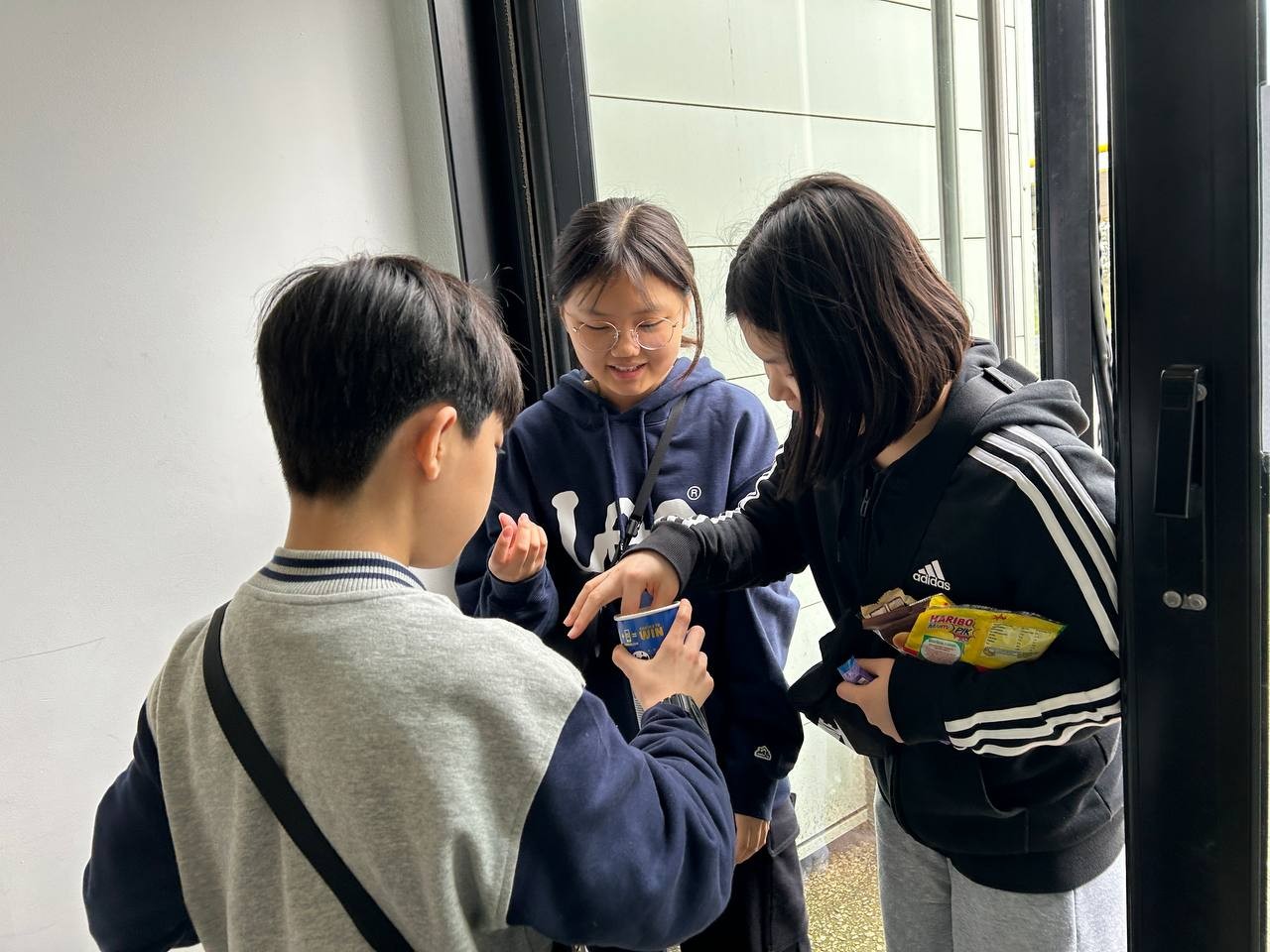 휴게소에서 선생님들이 준비한 샌드위치로 맛난 점심식사를 했습니다. 아이들은 여기에 추가로 휴게소에서 산 과자, 음료수, 젤리, 빵을 신나게 먹었습니다. 다들 배가 터질 것 같은 상태로 독일로 이동했습니다.
