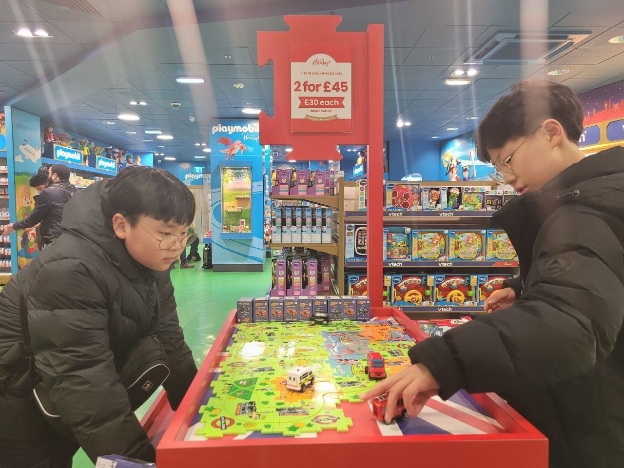 서점에서 책을 읽는 것도 좋았지만 아이들의 눈길을 사로잡는건 햄리스 장난감 백화점에 있는 수많은 종류의 장난감들입니다. 다들 새롭고 신기한 물건을 보는 재미를 느낍니다. 장난감백화점을 나오는 아이들의 손이 굉장히 무겁네요:)