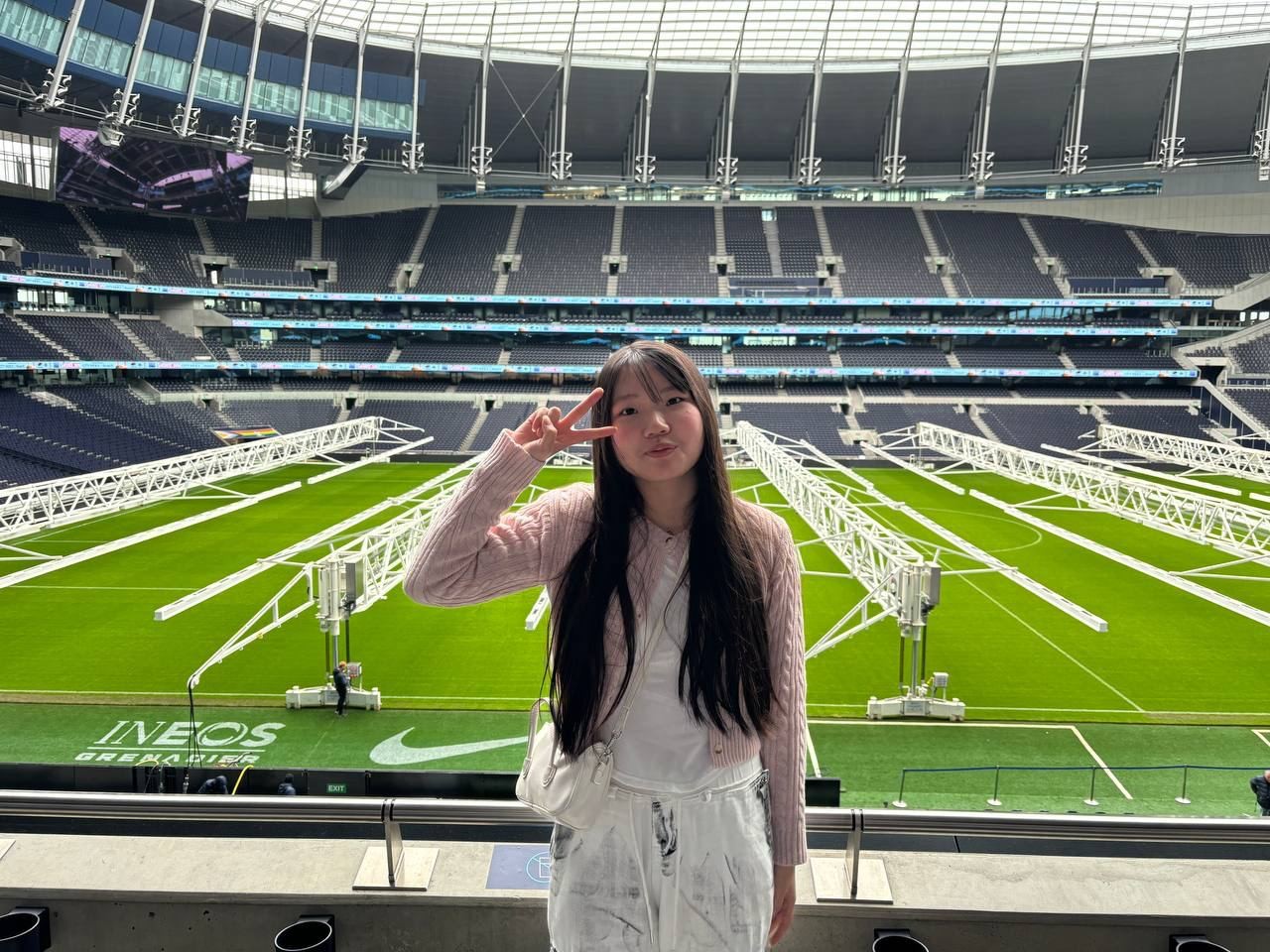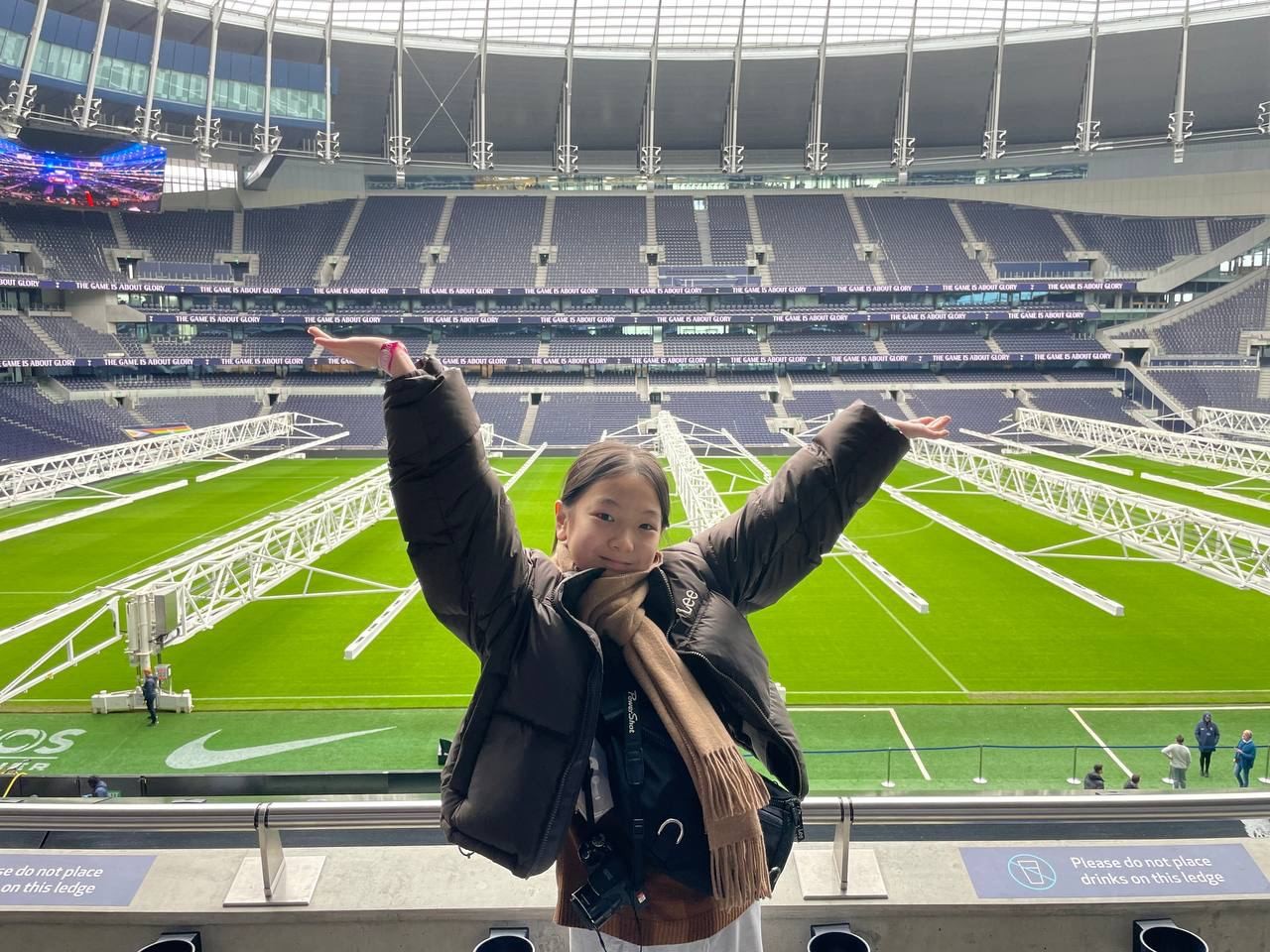 드디어 토트넘 구장에 입장! 축구 관중석부터 방문했습니다. 이곳에 직접 오니 가슴이 두근거립니다. 선수들이 경기에 임하기 전 인터뷰하는 공간과 실제 선수들이 쓰는 라커룸에 방문해 손흥민 선수 유니폼 앞에서 사진을 찍어보기도 합니다. 너도나도 손흥민 선수의 세레모니 포즈를 선보입니다. 마침내 선수들이 뛰는 필드에도 가봅니다. 마치 내가 축구선수가 된 듯 위풍당당하게 축구장으로 들어섭니다. 꿈만 같은 순간이었습니다.