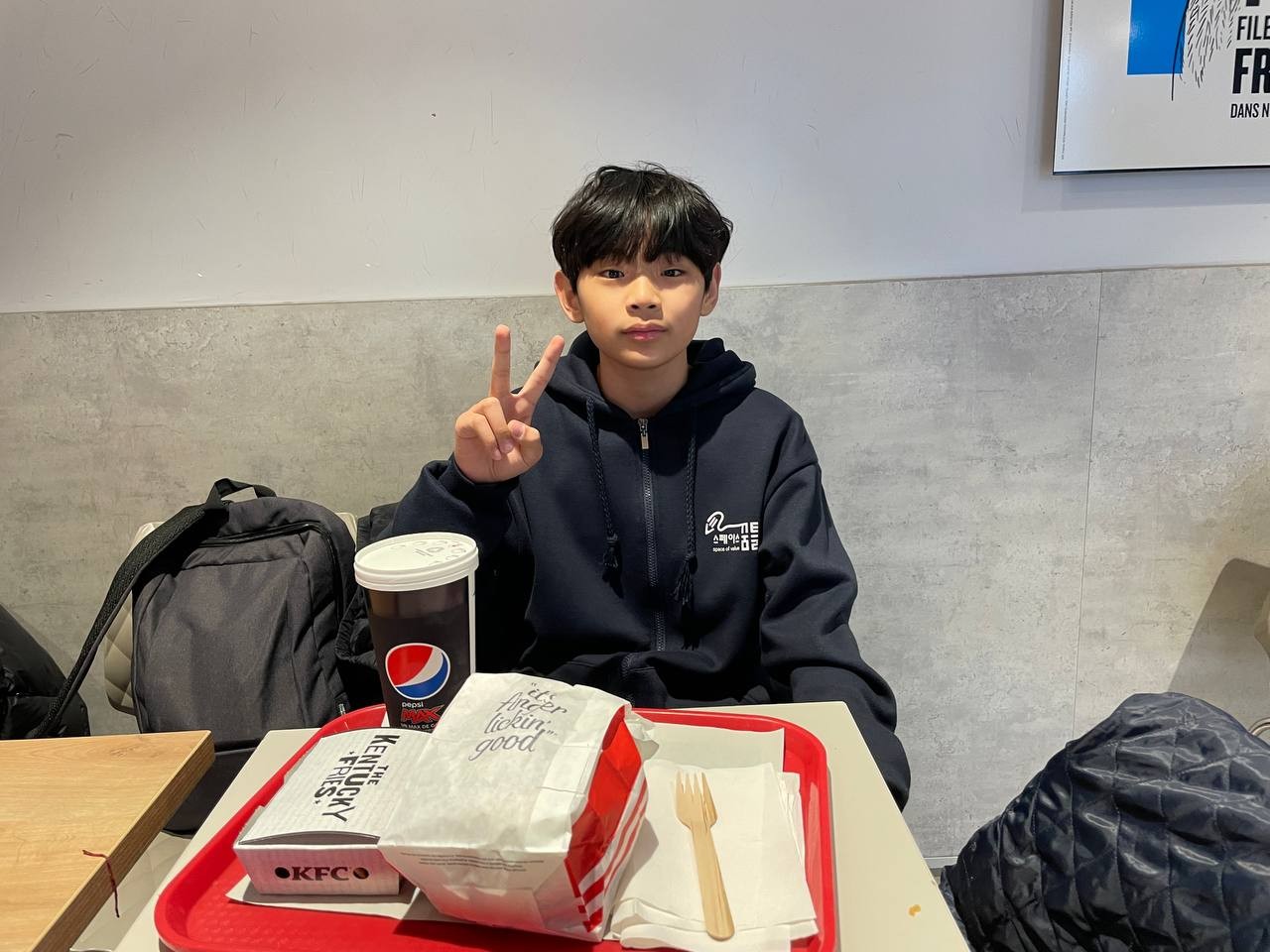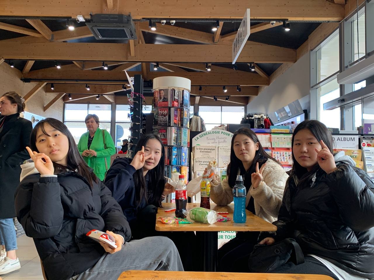 친구들과 많이 친해져서 버스안에서 시간가는 줄 모르고 떠들고 놀다보니 휴게소에 도착했습니다. 3조친구들이 준비한 간장계란밥을 먹고 휴게소를 구경하며 KFC에서 치킨도 사먹고 과자도 먹습니다. 배부르게 밥과 간식을 먹고 다시 파리로 출발합니다.