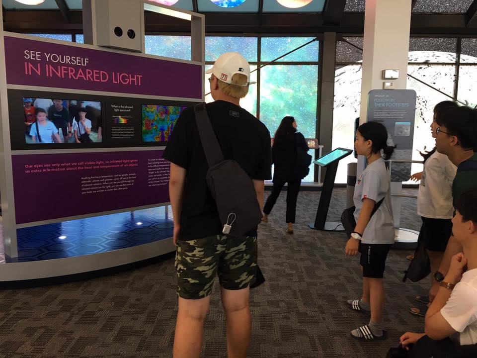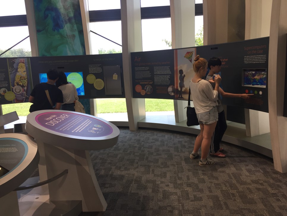 "나사의 본부는 미국 워싱턴에 있다. 나사는 실제 연구소 같은 장소를 공개할 수 없기 때문에 관광객들을 위해 미국 전역에 관광을 위한 분점 같은 장소들을 만들었다. 그중에 내가 간 곳은 제일 처음 생긴 곳이었다. 그리 크지는 않았지만 참 예쁜 우주의 사진들도 많았고, 우주에서 쓰는 장비들도 많이 있었다. 적외선 카메라도 있었는데 다들 얼굴만 빨간색으로 나왔다.