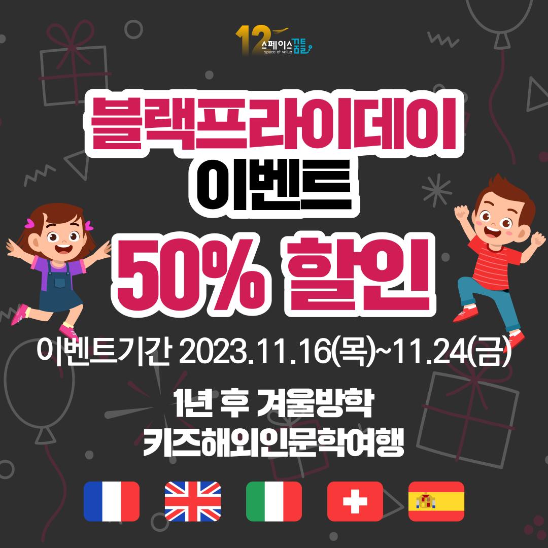 블랙프라이데이 키즈유럽여행 50% 할인 (~11.24)