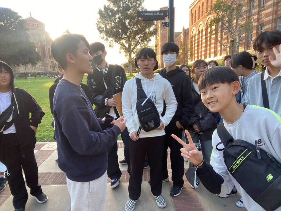 이후 UCLA 재학생과 함께 UCLA 투어를 진행했습니다. UCLA의 역사와 건물들의 별명, 유학 생활 등 재학생만이 알려줄 수 있는 소중한 경험에 아이들은 신이 나서 계속 질문을 했습니다.