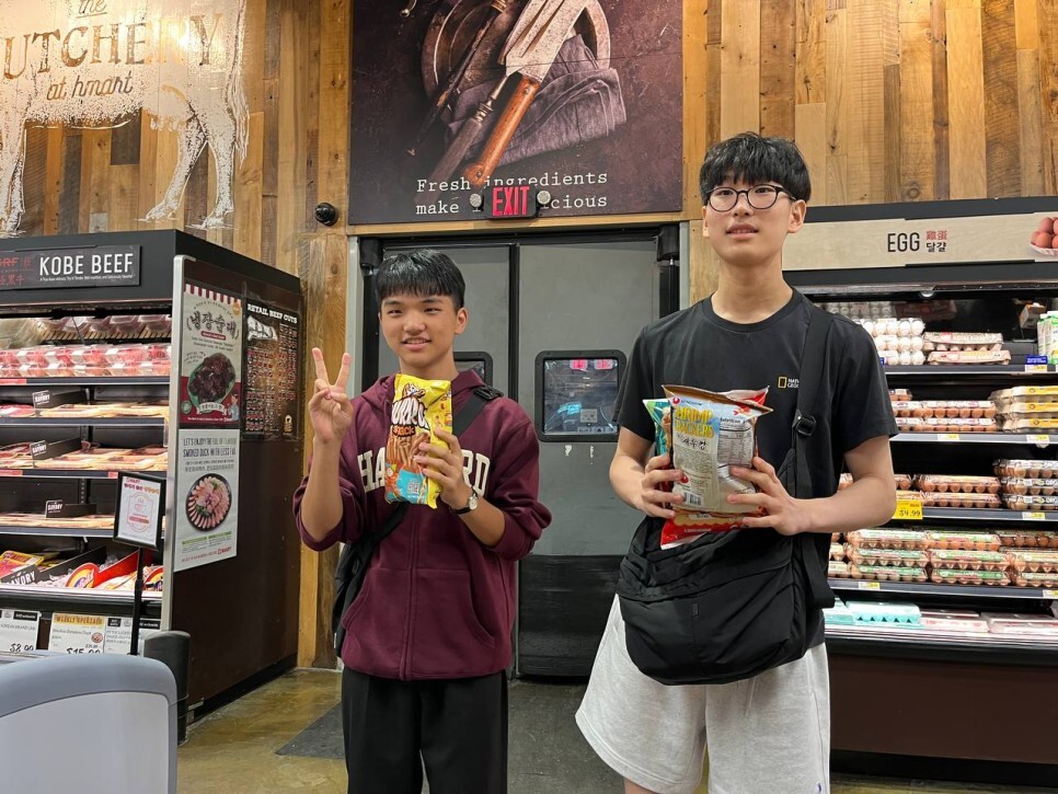 다들 차에 타서 선생님들이 준비한 간식거리들까지 받아들고 보스턴으로 떠났습니다. 하루 종일 노래 부르다 자다가 먹다가 얘기하다가를 반복하며 다들 즐거운 시간을 보내며 이사를 했습니다. 가는 길에 휴게소 근처 마트에서 자유시간도 가졌습니다. 한번은 한인마트를 만나 아이들이 열광하기도 했습니다. 라면 코너를 떠날 줄 모르는 아이들입니다.