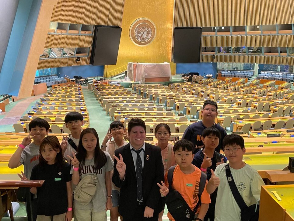 오늘의 첫 방문지는 국제정치의 중심 유엔본부입니다. 유엔 직원의 안내로 투어를 진행했습니다. 선생님들의 통역으로 안내를 받기도 하고 일부 아이들은 자원해서 통역 없이 안내를 받기도 했습니다.