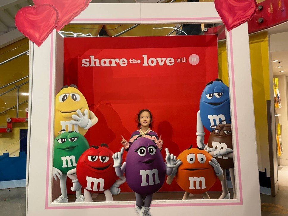 M&M 월드를 방문했습니다. 들어가자마자 여기저기에서 풍기는 달콤한 초콜릿 향에 아이들은 한껏 신이 났습니다. M&M 캐릭터와 사진도 찍고 직접 다양한 초콜릿도 봉투에 담아보았습니다.