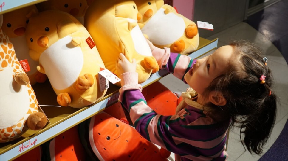햄리스 장난감 백화점을 들어가니 눈이 휘둥그레질 정도로 장난감이 많았습니다. 1층부터 5층까지 모든 층을 다니며 장난감을 구경했습니다. 차가운 눈도 만들어보고 물고기 장난감도 구경하며 즐거운 시간을 가졌습니다. 영국에 오기 전부터 햄리스 장난감 백화점을 기대하던 아이들은 무슨 장난감을 살지 행복한 고민에 빠졌습니다.