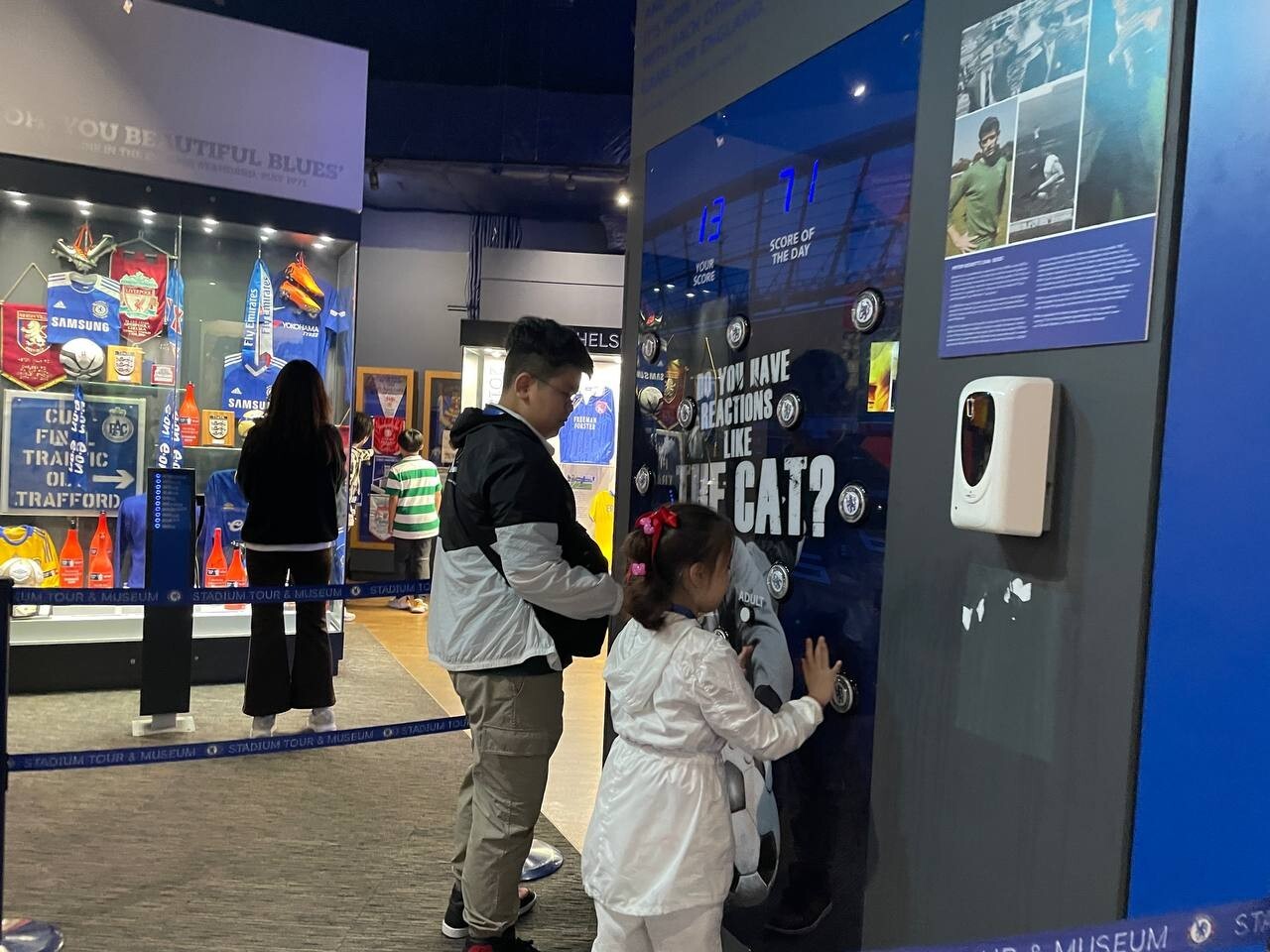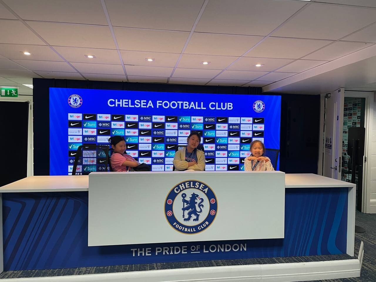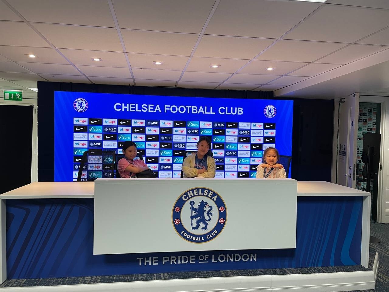 다음으로는 첼시 구장 투어를 했습니다. 영국 명문 구장으로 유명한 첼시 구장을 보며 넓은 축구장에서 꼭 축구를 하고 싶다고 합니다. 실제 선수들이 구장에 입장하는 것처럼 당당하게 입장하며 손도 흔들어봅니다.