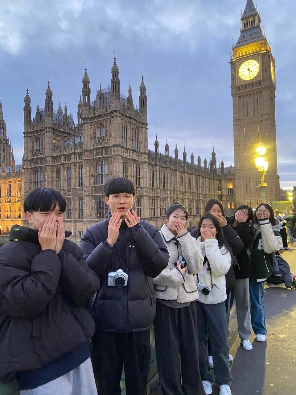 오늘은 런던 시내 여행을 하는 날입니다. 아이들은 설레는 마음으로 코우치를 타고 런던 시내로 나갔습니다. 첫 방문지는 트라팔가 광장과 내셔널 갤러리입니다. 내셔널 갤러리를 방문했습니다. 다빈치의 ‘암굴의 성모’를 시작으로 고흐, 모네, 쇠라 등 인상주의 화가들의 작품을 관람했습니다. 아이들이 직접 안내원들에게 길을 물어 렘브란트의 ‘34세 초상화’를 찾아보기도 했습니다.다음으로는 코벤트 가든을 방문했습니다. 중세 시대 상인들이 모여 만든 코벤트 가든은 현재도 많은 상점이 들어선 명소입니다. 아이들은 코벤트 가든에서 간식도 사 먹고 길거리 공연을 신나게 관람하기도 했습니다.해가 뉘엿뉘엿 질 때쯤 빅벤과 런던아이 야경을 보러 갔습니다. 빅벤 앞에서 우수에 찬 눈빛으로 포즈를 취하기도 하고, 런던아이를 들어 올릴 것처럼 팔을 뻗어 재밌는 사진도 남겼습니다. 아이들의 표정이 어제보다 밝은 모습입니다.
