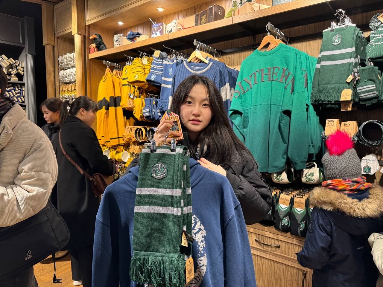 가장 먼저 해리포터 기념품 숍에 들렀습니다. 기념품 숍에 들어가기 전 포토존 앞에서 사진을 찍었습니다. 예쁘게 꾸며진 포토존에서 사진을 찍는 아이들의 모습이 굉장히 신나 보입니다. 기념품 숍 안에는 부엉이 인형, 지렁이 맛 캔디, 목도리, 엽서, 지팡이와 같은 영화 속에 등장하는 소품들이 있었습니다. 아이들의 눈이 반짝거립니다. 한 시간이 넘는 시간 동안 열심히 골라봅니다.