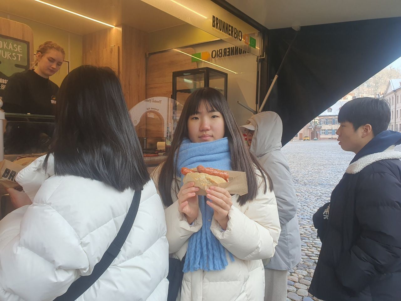 다음은 프라이부르크 대성당입니다. 웅장한 대성당을 사진으로 남기고 주변에 열린 장에서 독일 소시지가 들어간 핫도그도 사 먹었습니다. 프라이부르크 대성당에서의 일정 이후 수원시 마크를 찾기 위한 미션을 진행했습니다. 프라이부르크 시청사 앞에는 자매결연을 한 수원시 마크가 새겨져있는데 타국에서 발견한 한국어에 아이들이 신기해합니다.