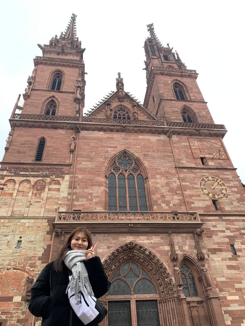 다음으로 바젤 대성당을 갔습니다. 바젤 시청과 같이 붉은 외관을 띠는 바젤대성당 왼쪽으로 돌아가면 바젤을 가로지는 강과 함께 시내 전경을 바라볼 수 있는 아름다운 전망대가 있습니다. 대성당을 떠나기 전 아름다운 바젤을 추억 속에 남기기위해 멋진 포즈를 취하고 사진을 찍었습니다.