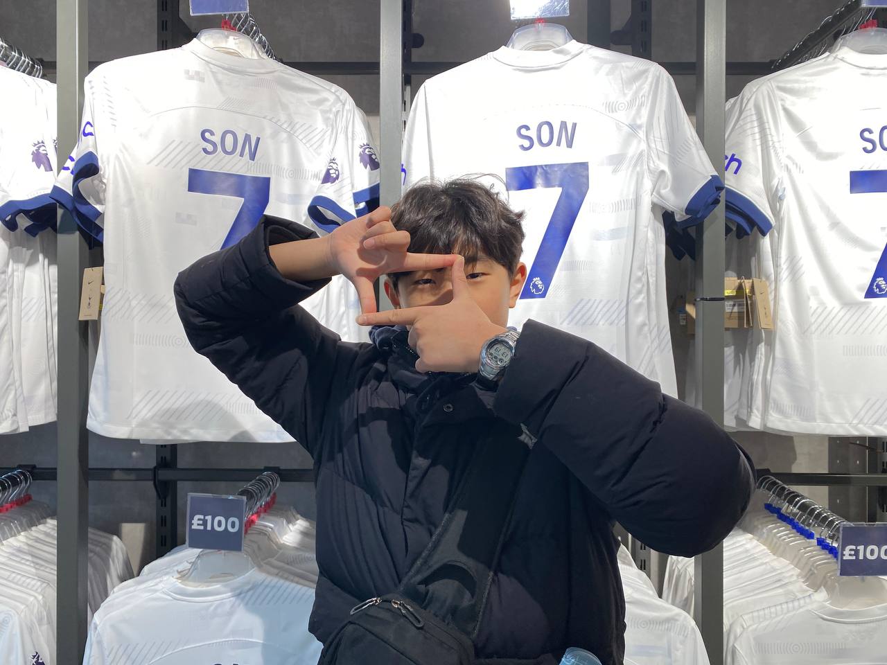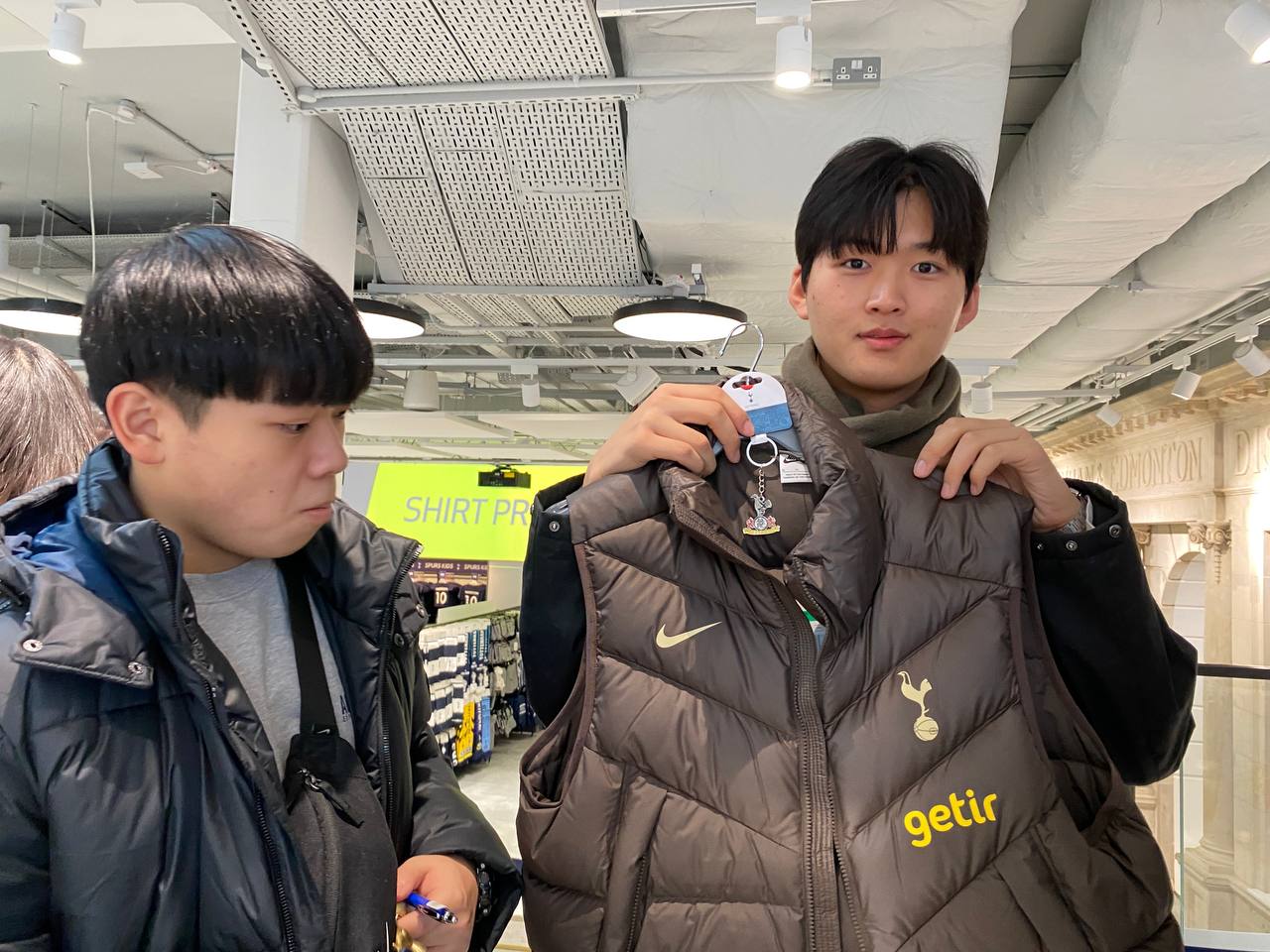 경기장 투어를 마치고 기념품샵으로 갑니다. 손흥민 선수 유니폼에 사진도 찍어보고 유니폼도 사서 입었습니다.